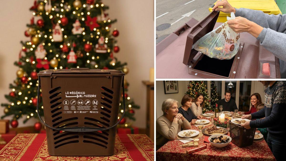 En Navidad producimos muchos residuos orgánicos: restos de comidas, cáscaras, servilletas manchadas, posos de café… Durante estas semanas, el contenedor marrón cobra más protagonismo que nunca.