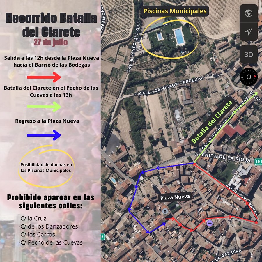 Este 2025, la Batalla del Clarete de San Asensio tendrá lugar el domingo 27 de julio. Habrá animación desde las 11 de la mañana en los soportales del Ayuntamiento, donde se repartirán los preñaos y un jarrito conmemorativo. Allí estará esperando el remolque del Ayuntamiento, cargado con miles de litros de vino clarete -hasta 40.000 litros se han llegado a lanzar, donados por bodegas y cooperativas de este pueblo.