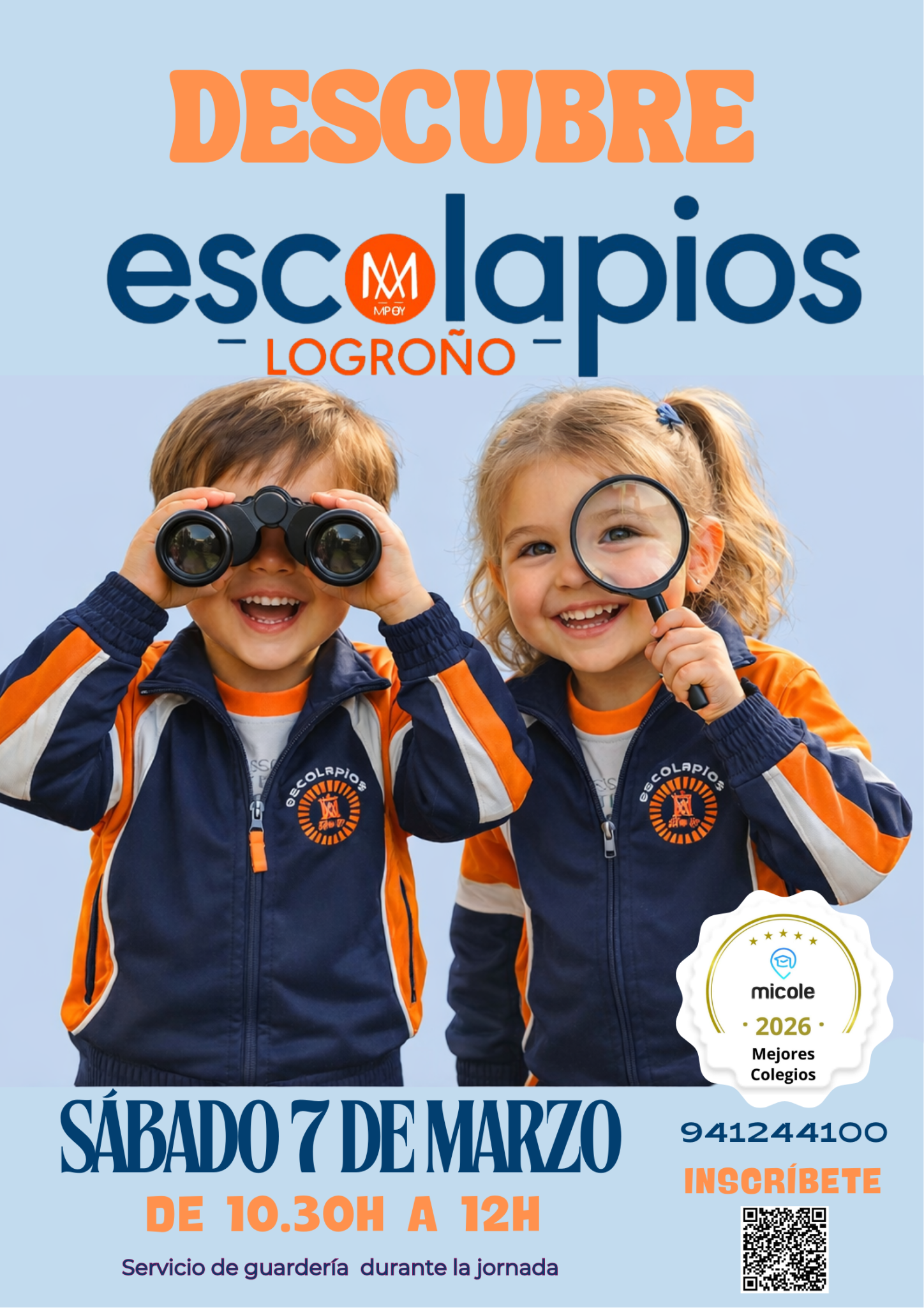 Te invitamos a descubrir Escolapios el próximo sábado 7 de marzo de 10:30 a 12:00, podrás conocer nuestra propuesta pedagógica, encaminada a promover aprendizajes significativos y competenciales en nuestros alumnos.