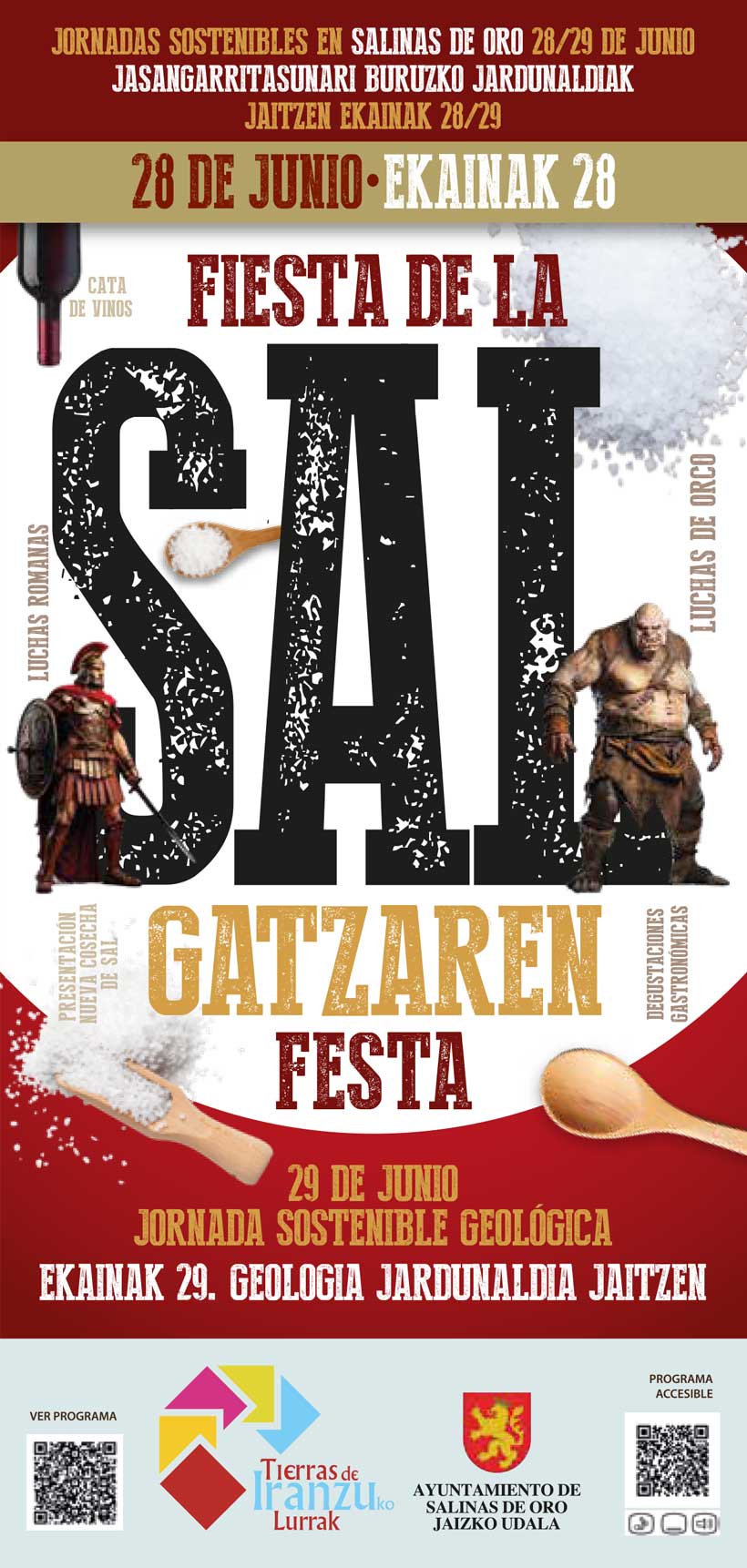 En esta Fiesta de la Sal en Tierras de Iranzu, la sal va a ser protagonista indiscutible mediante visitas guiadas a la salinera, exhibición de extracción de la sal, catas de sales ecológicas, baños de agua salada de manantial y pediluvio. Pero también luchas romanas, combates medievales, luchas de orcos, feria de artesanía, exposición de ganado, y un largo etcétera de actividades que se irán repartiendo entre el sábado 28 y del domingo 29 de junio.