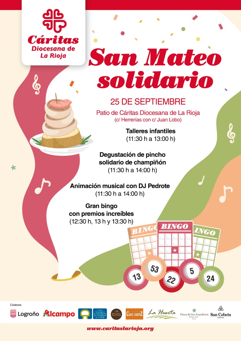 Cáritas La Rioja celebrará este jueves, 25 de septiembre, una fiesta solidaria en el patio de su sede (c/ Herrerías con c/ Juan Lobo) para sumar a las fiestas de San Mateo un encuentro festivo con fines sociales.