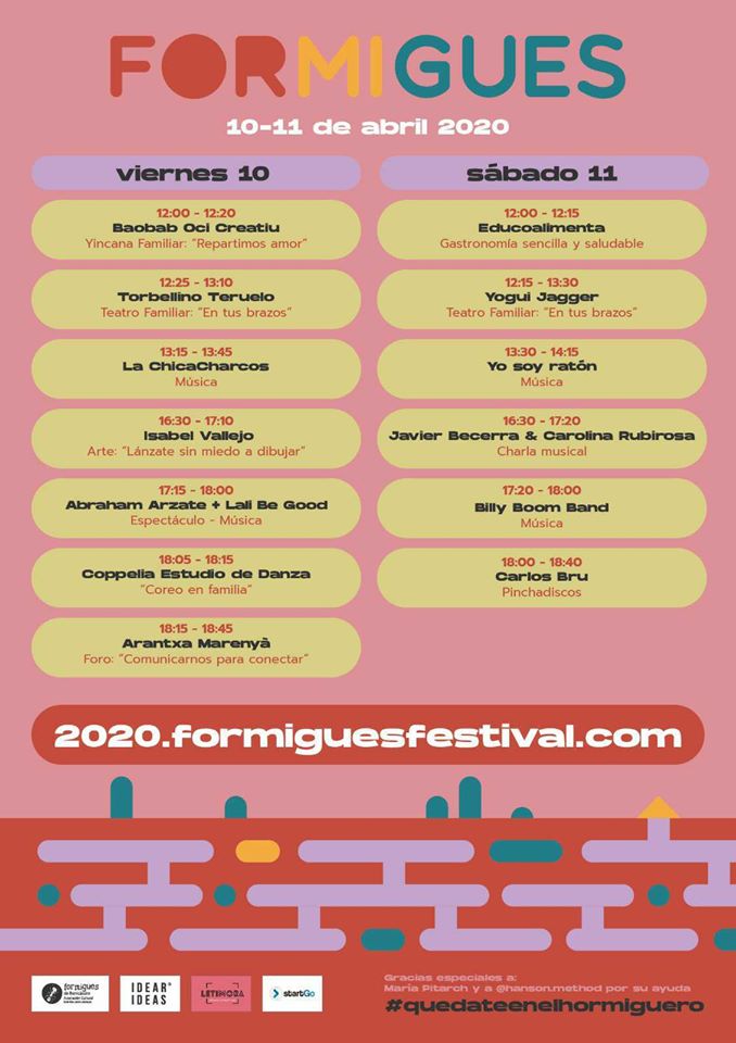 Este año, el Formigues Festival se queda en casa, pero seguirá haciéndonos disfrutar de los artistas que más nos gustan a las familias, los cuales, por cierto, también coinciden con la lista de Spotify de El Balcón de Mateo (por qué será): Billy Boom Band, Yo soy Ratón, La Chicacharcos, Lali Be Good… Y otro montonazo de artistas que durante dos días nos harán saltar y bailar en el salón.
