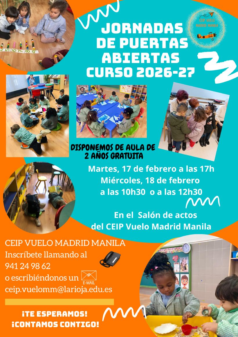 - Inscripciones llamando al 941 24 98 62 o escribiendo mail a: ceip.vuelomm@larioja.edu.es
