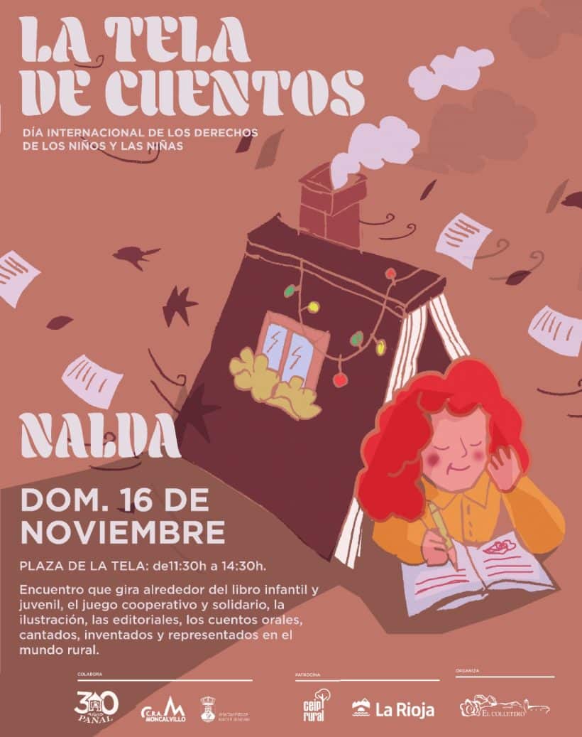 Las asociaciones El Colletero y PANAL, de Nalda, organizan la novena edición de ‘La Tela de Cuentos‘. Un encuentro que gira alrededor del libro infantil y juvenil, el juego cooperativo y solidario, la ilustración, las editoriales, los cuentos orales, cantados, inventados y representados en el mundo rural.