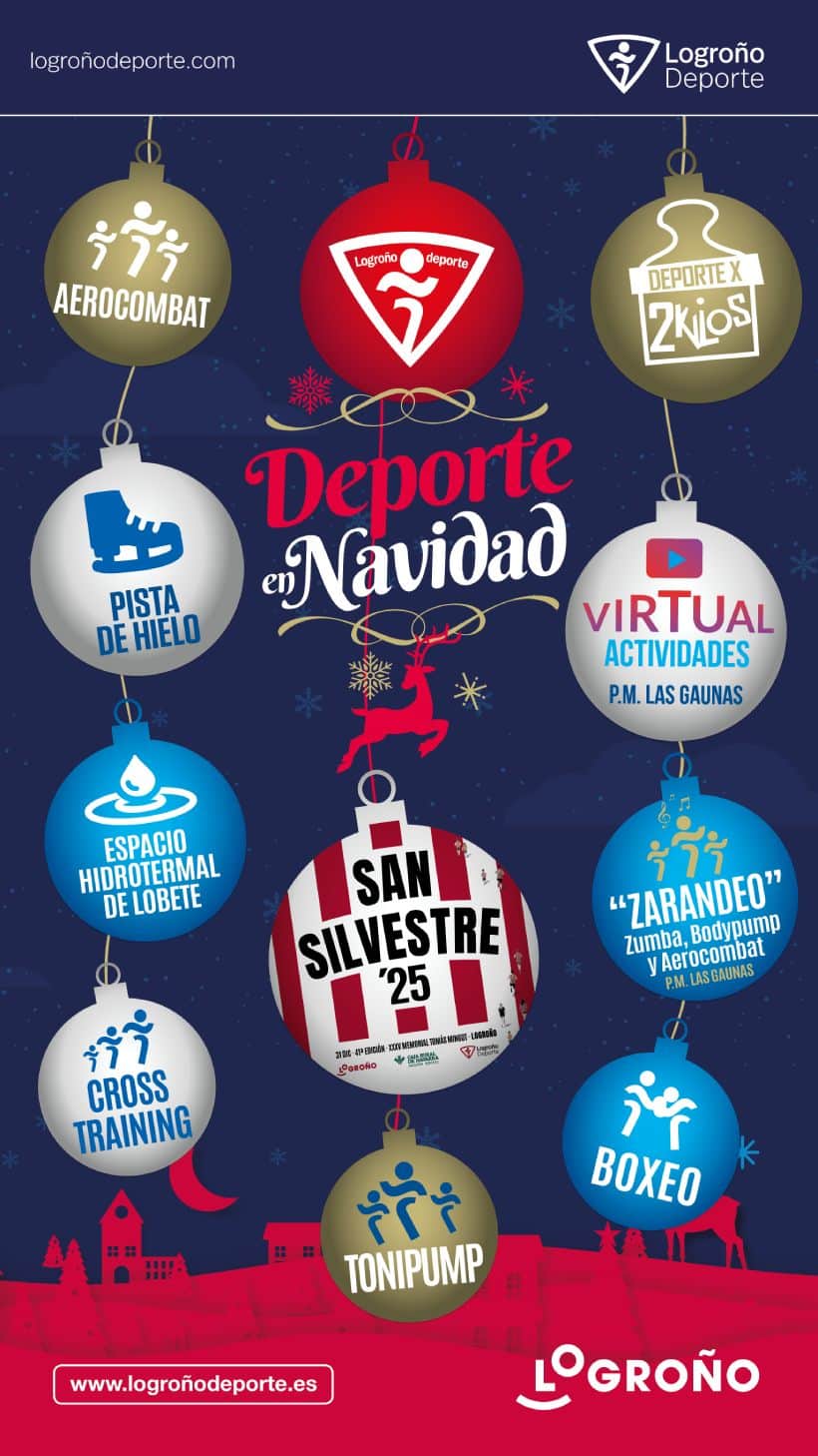 Entre las citas destacadas figura la jornada de Deporte solidario en la Pista de Hielo, que se celebrará el 3 de enero a beneficio del Banco de Alimentos, así como la iniciativa Zarandeo, una sesión especial de actividades dirigidas que tendrá lugar el 27 de diciembre en el complejo deportivo de Las Gaunas. Además, continúan abiertas las inscripciones para la XLI Carrera San Silvestre, prevista para el 31 de diciembre.
