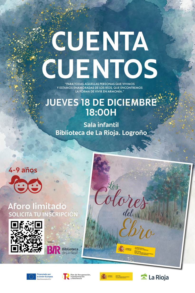 La Dirección General de Calidad Ambiental, Cambio Climático y Agua del Gobierno de La Rioja ofrece el cuentacuentos ‘Los colores del Ebro’, una actividad dirigida al público infantil que invita a reflexionar, desde la narración y la imaginación, sobre la relación con los ríos y la importancia de convivir con ellos de forma respetuosa.