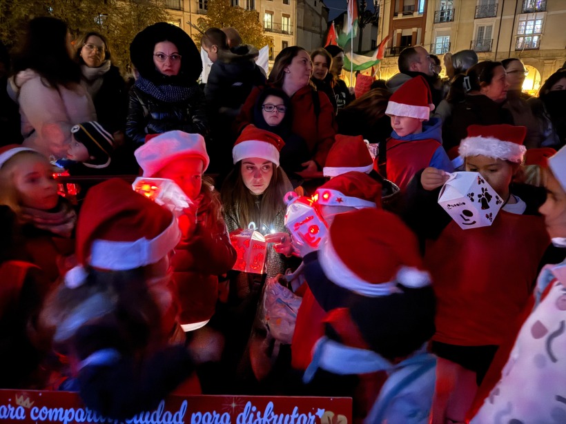 Logroño ha encendido oficialmente su Navidad esta tarde con un multitudinario acto en la plaza del Mercado. Al comienzo del evento, unas primeras gotas hicieron temer lo peor y anticiparon la lluvia que finalmente llegó, pero ni el agua ni el frío frenaron a las familias logroñesas, que un año más no han querido perderse este momento tan esperado que marca el inicio de las fiestas.